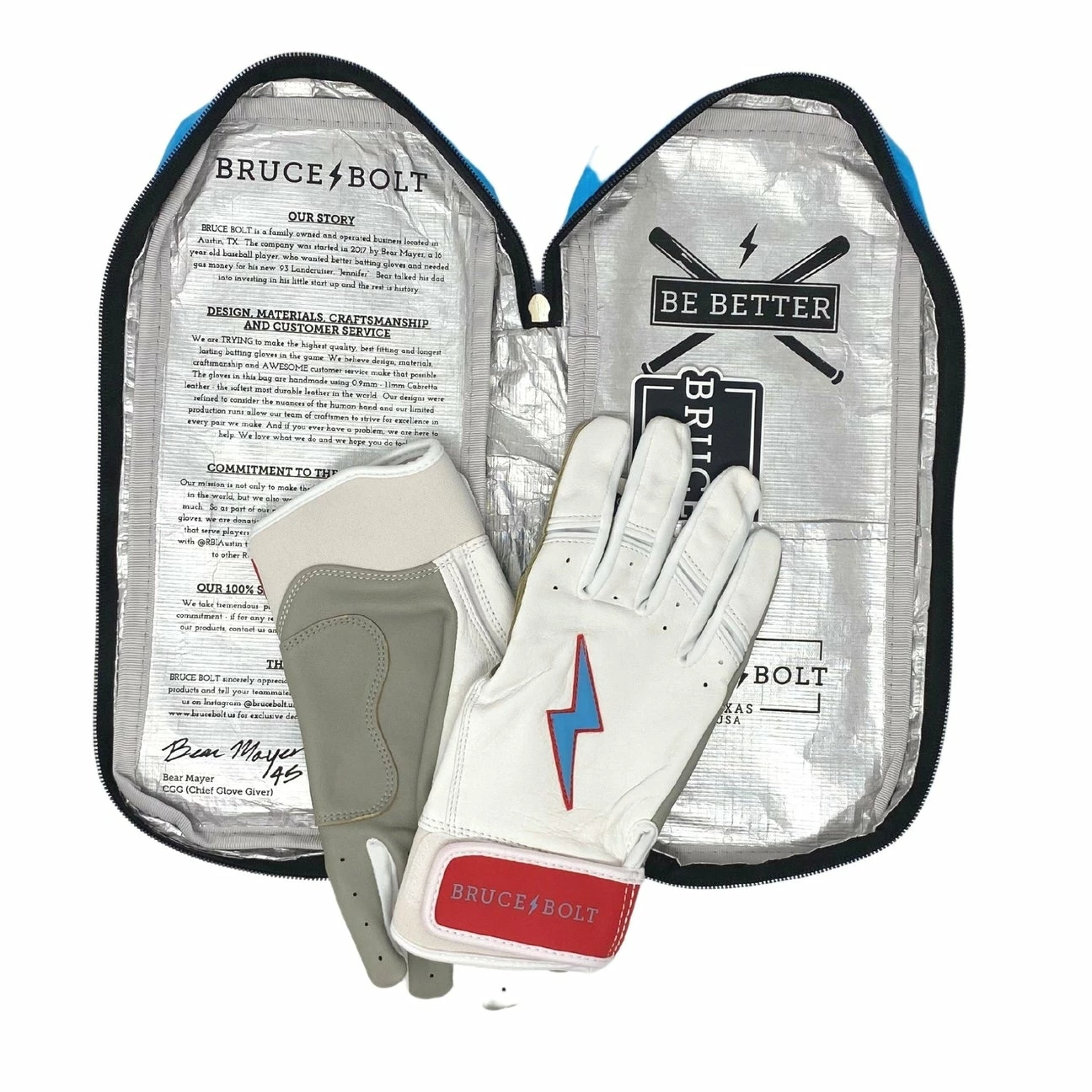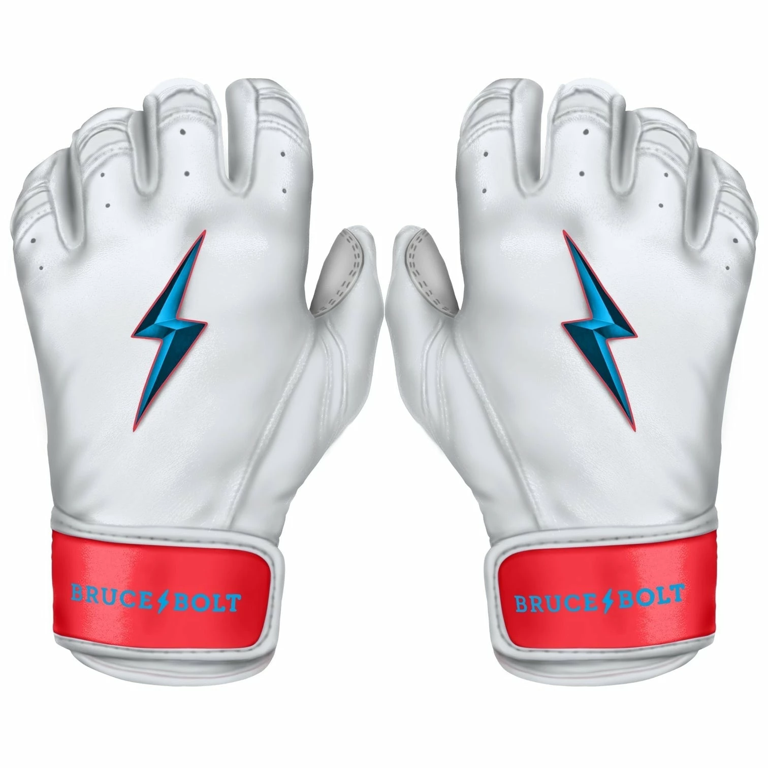 HIGHEST QUALITY, MOST DURABLE BATTING GLOVE IN BASEBALL: Each pair of BRUCE BOLT batting gloves are handmade by skilled craftsmen using only the highest quality 0.9mm Cabretta leather and stitching techniques which makes our gloves buttery soft but more durable than any other glove on the market.