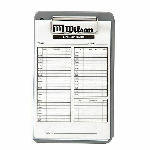 - They come stored in a convenient hard plastic case to protect them from debris, water damage or bending. Also included inside of the case with these baseball line up cards you will find a clipboard for easy writing and triplicate card format (carbon copy).